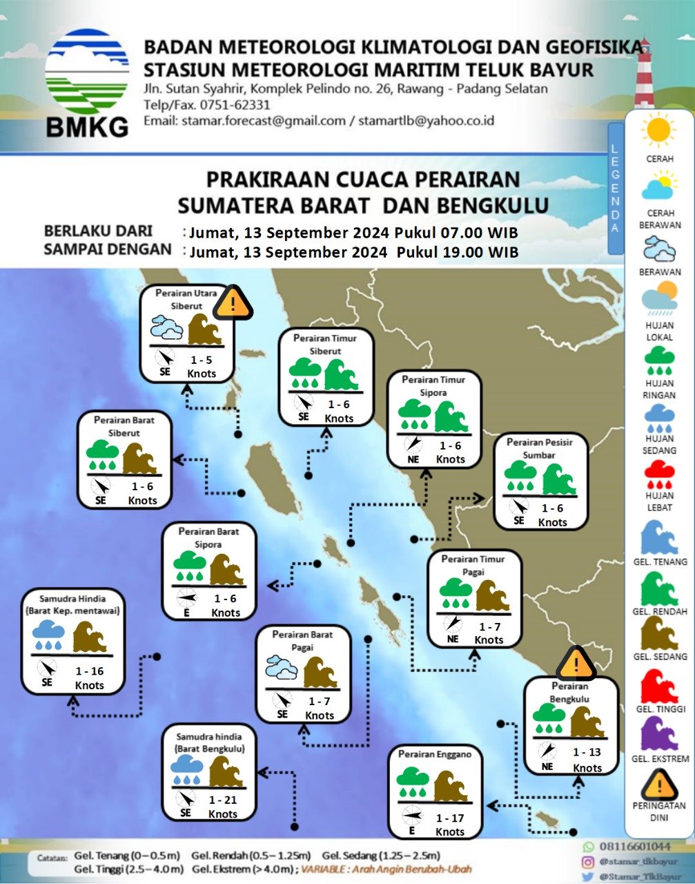 Bengkulu, – BMKG Bengkulu memprediksi kondisi cuaca maritim di Perairan Bengkulu pada 13 September 2024. Masyarakat dan pelaku pelayaran diimbau waspada terhadap potensi gelombang tinggi dan perubahan angin.