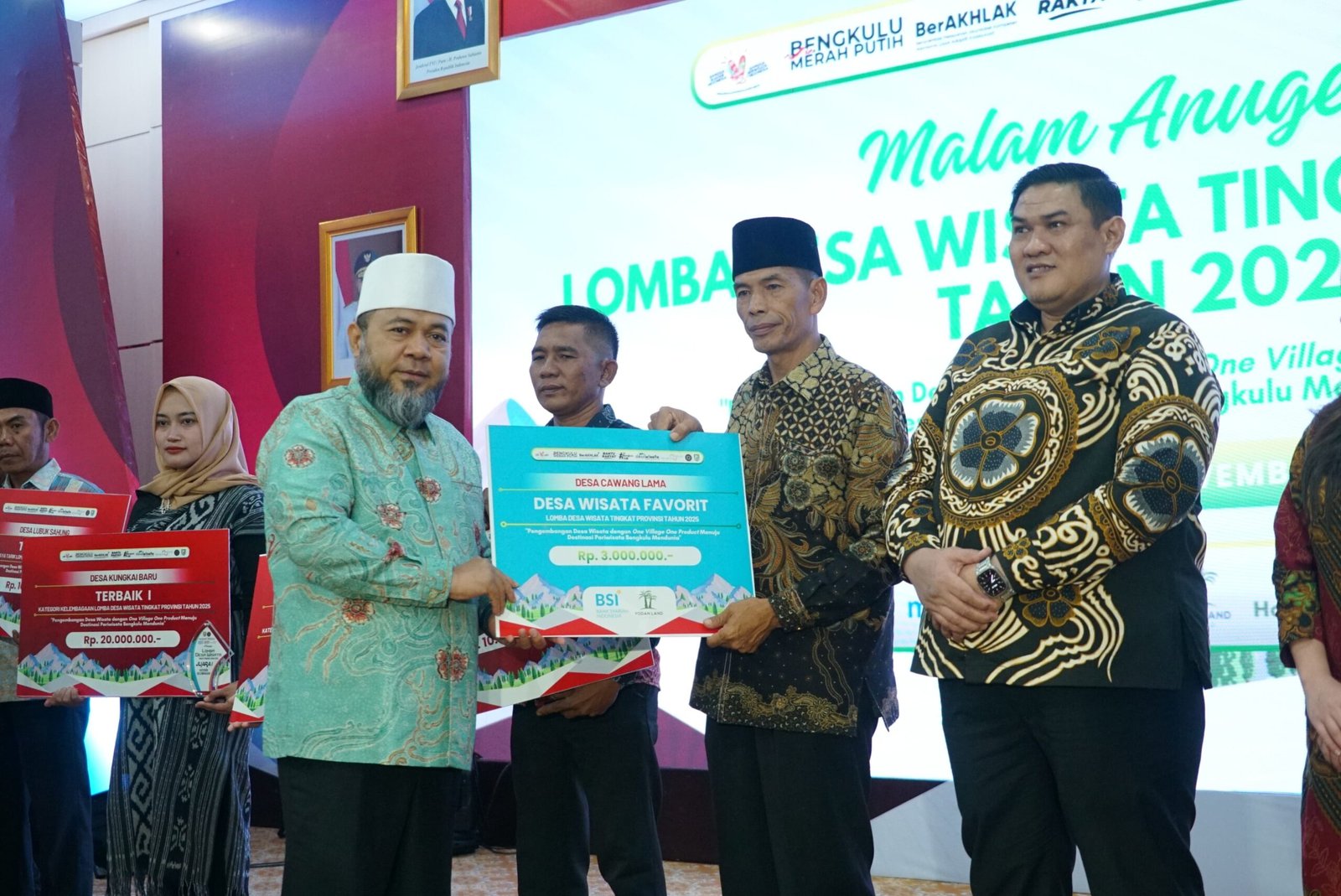 Bengkulu, – Gubernur Bengkulu Helmi Hasan menyerahkan langsung penghargaan kepada para pemenang Lomba Desa Wisata Tahun 2025 dalam acara Malam Anugerah Desa Wisata yang digelar di Balai Semarak, Rabu (19/11).