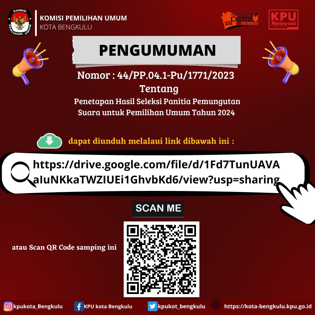 Bengkulu – Dalam menghadapi Pemilihan Umum (Pemilu) serentak di tahun 2024 yang akan datang, setelah melalui tahapan perekrutan yang digelar oleh Komisi Pemilihan Umum (KPU) Kota Bengkulu, akhirnya terpilih Panitia Pemungutan Suara (PPS) untuk 67 kelurahan dalam kota Bengkulu, yang masing-masing kelurahan berjumlah tiga orang anggota. Pengumuman ini dikeluarkan oleh KPU Kota Bengkulu pada Jumat, 20 Januari 2023.