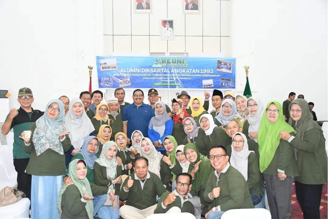 Bengkulu, – Pj Walikota Bengkulu Arif Gunadi mengikuti kegiatan reuni dan silaturahmi alumni Pendidikan dasar mental (Diksartal) keprajuritan angkatan 1993, diselenggarakan di Balai Kota Merah Putih, Minggu (14/1/24). Tampak hadir juga Pj Sekda Kota Bengkulu Eka Rika Rino dan Asisten I Kota Bengkulu Eko Agusrianto yang juga menjadi bagian dari alumni.