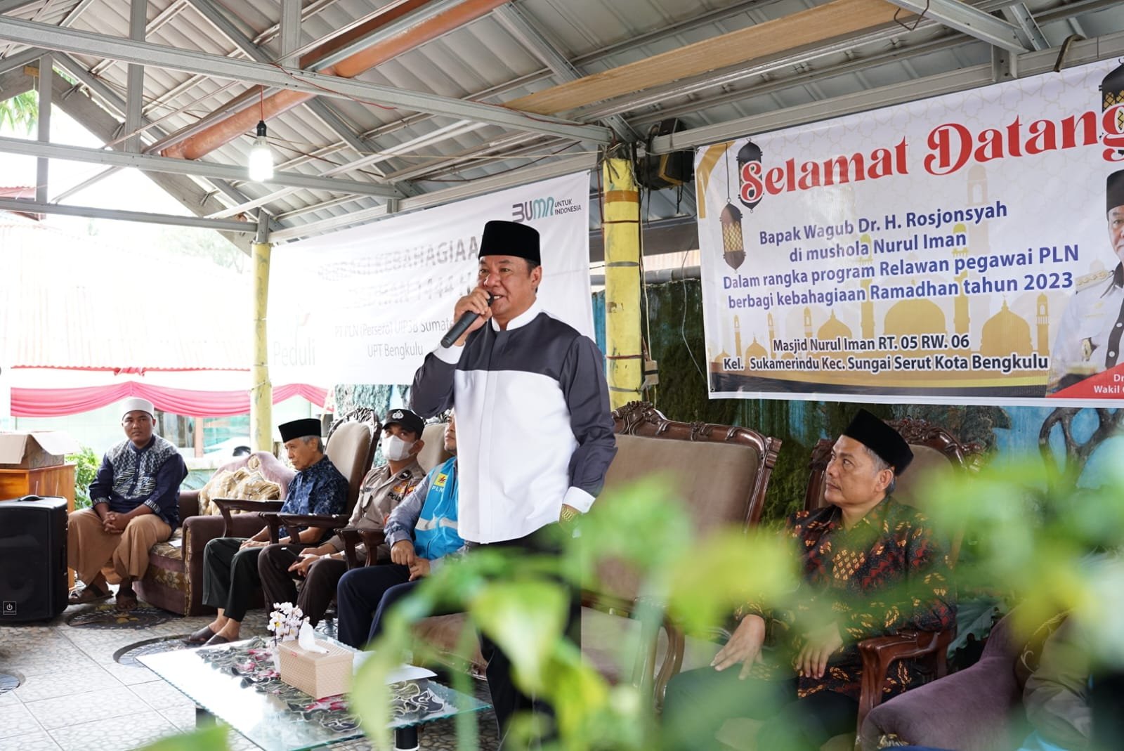 Bengkulu – Wakil Gubernur (Wagub) Bengkulu Rosjonsyah menyalurkan bantuan program relawan pegawai PLN UPT Bengkulu. Kali ini bantuan diperuntukkan untuk mushola Nurul Iman Sukamerindu yang sudah 15 tahun tidak berfungsi, Rabu 12/05/2023.